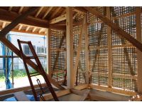 臼杵こども図書館の筋交い補強工事例 庇が有るので工夫しました。