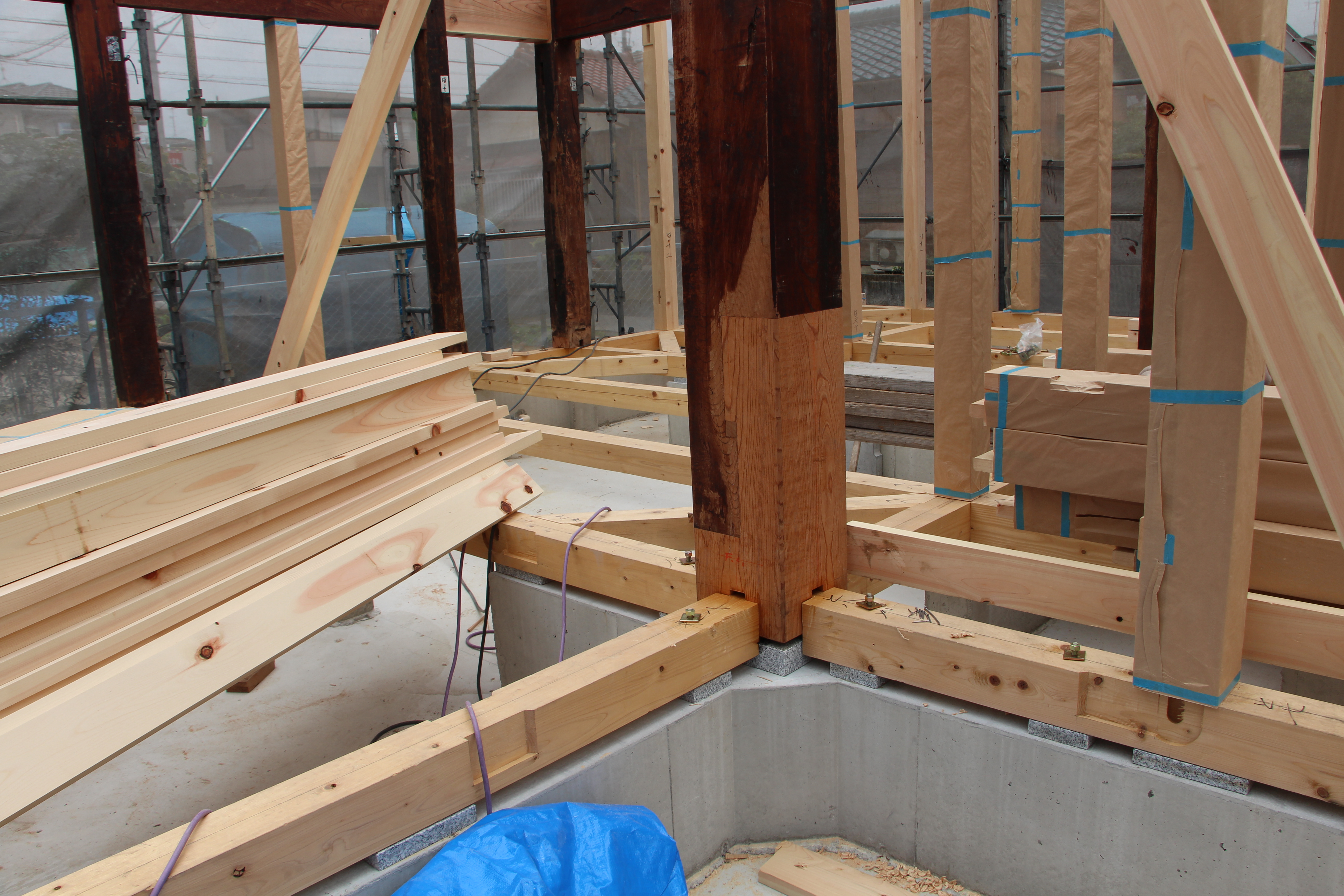一覧 < new back > 江南市・新潟の古民家移築住宅上棟、小屋組 小屋組の棟木まで立ち上がりました。 古材の仮組も行い、狂いのある部分の修正もします。コンクリートの基礎と土台の間は 白御影石の基礎パッキン Gallery 兜造りの屋根です。 根継ぎ柱部分 欅の柱の足元の仕口の状況 高さ40センチの差し鴨居です。 基礎工事完成状況 地盤調査を行い、ベタ基礎しました。 地鎮祭 一覧 < new back > 施工実績ギャラリーカテゴリ一覧 古民家再生・リノベーション 古民家移築 新築 その他 最新の施工ギャラリー 三重県桑名市 桑名の古民家再生(リノベーション) 新築 古民家和風住宅・愛知県大府市H邸新築工事 古民家移築 岐阜県多治見市 ギャルリももぐさ(古民家移築再生) 愛知県江南市 江南市・古民家移築再生住宅庭完成