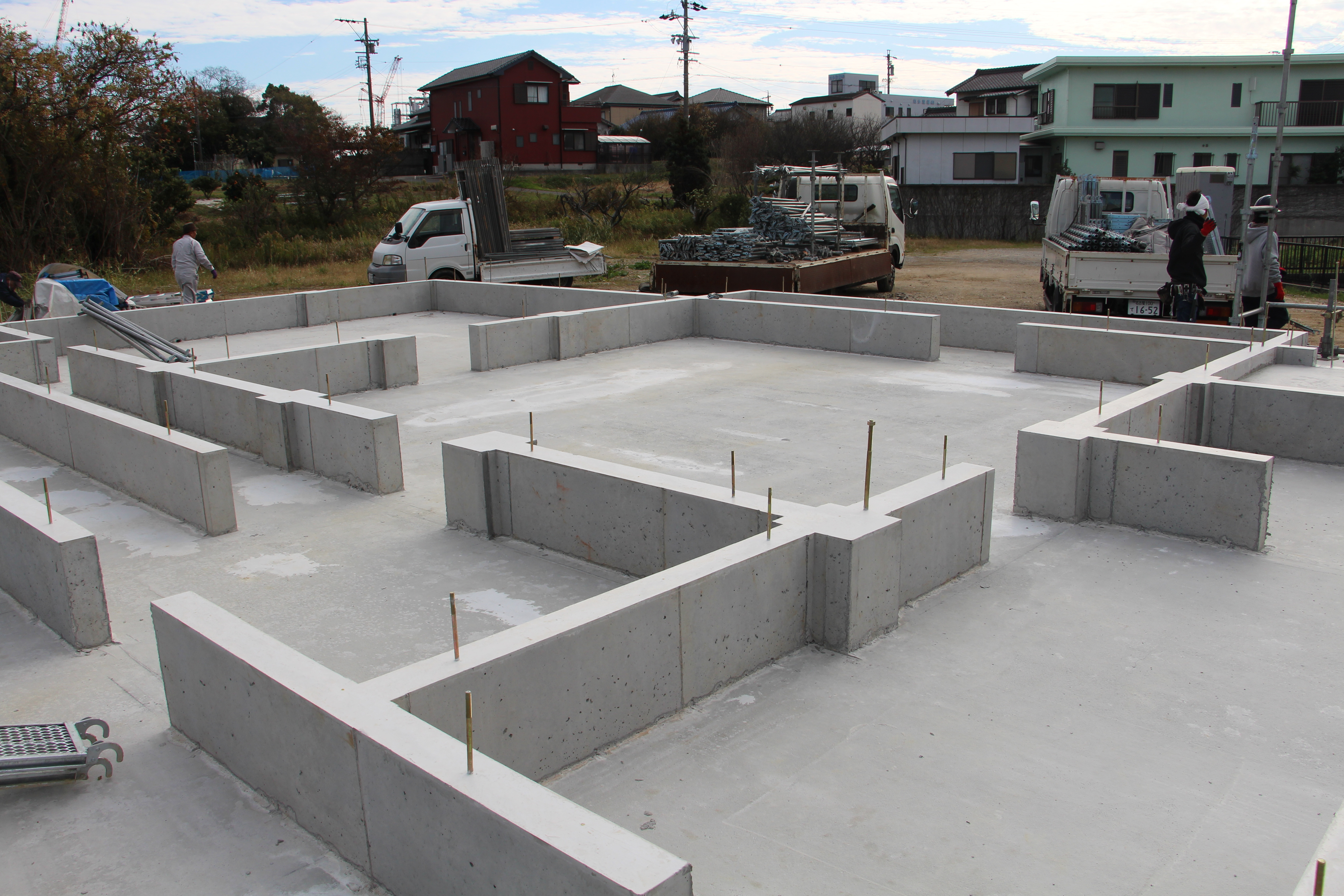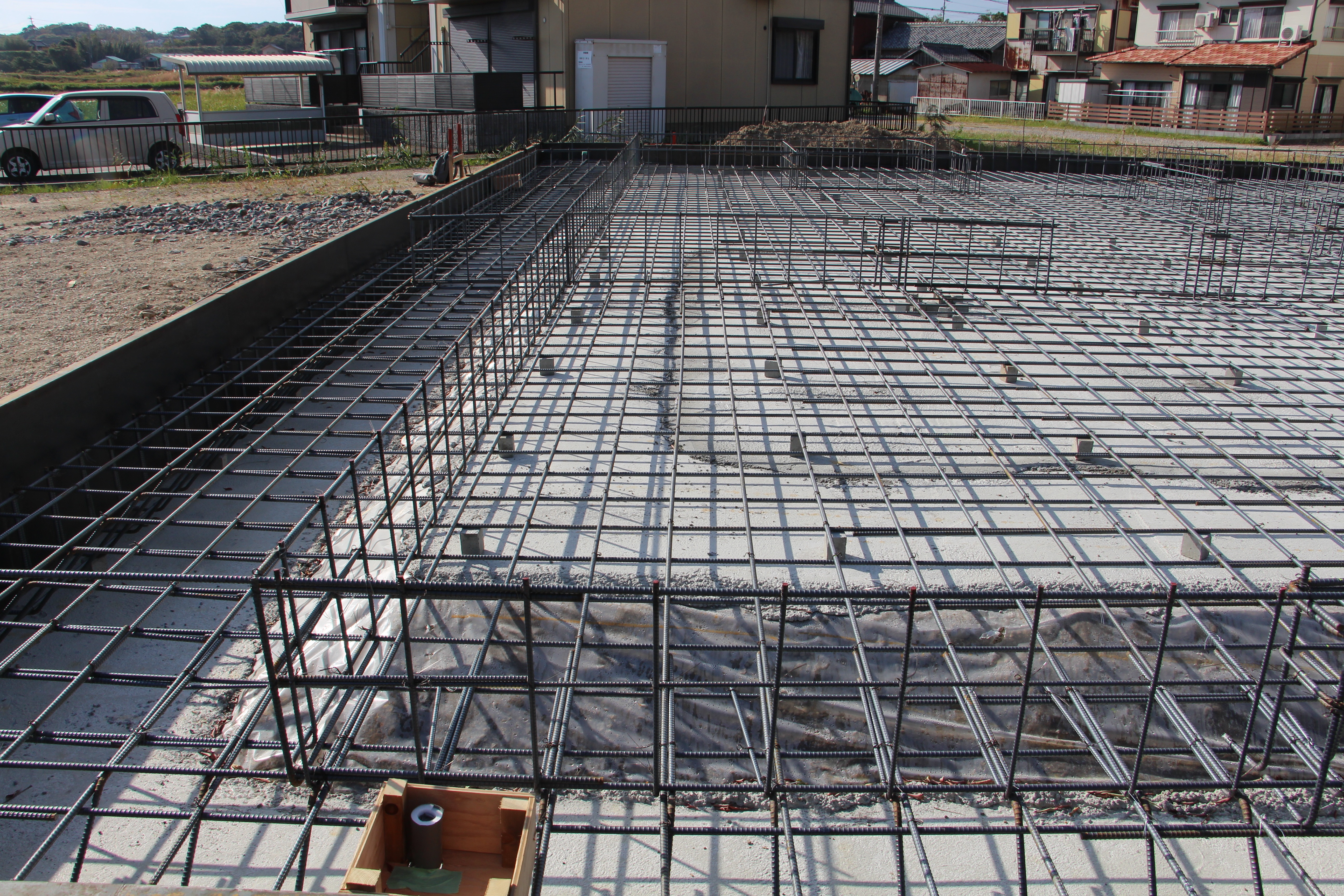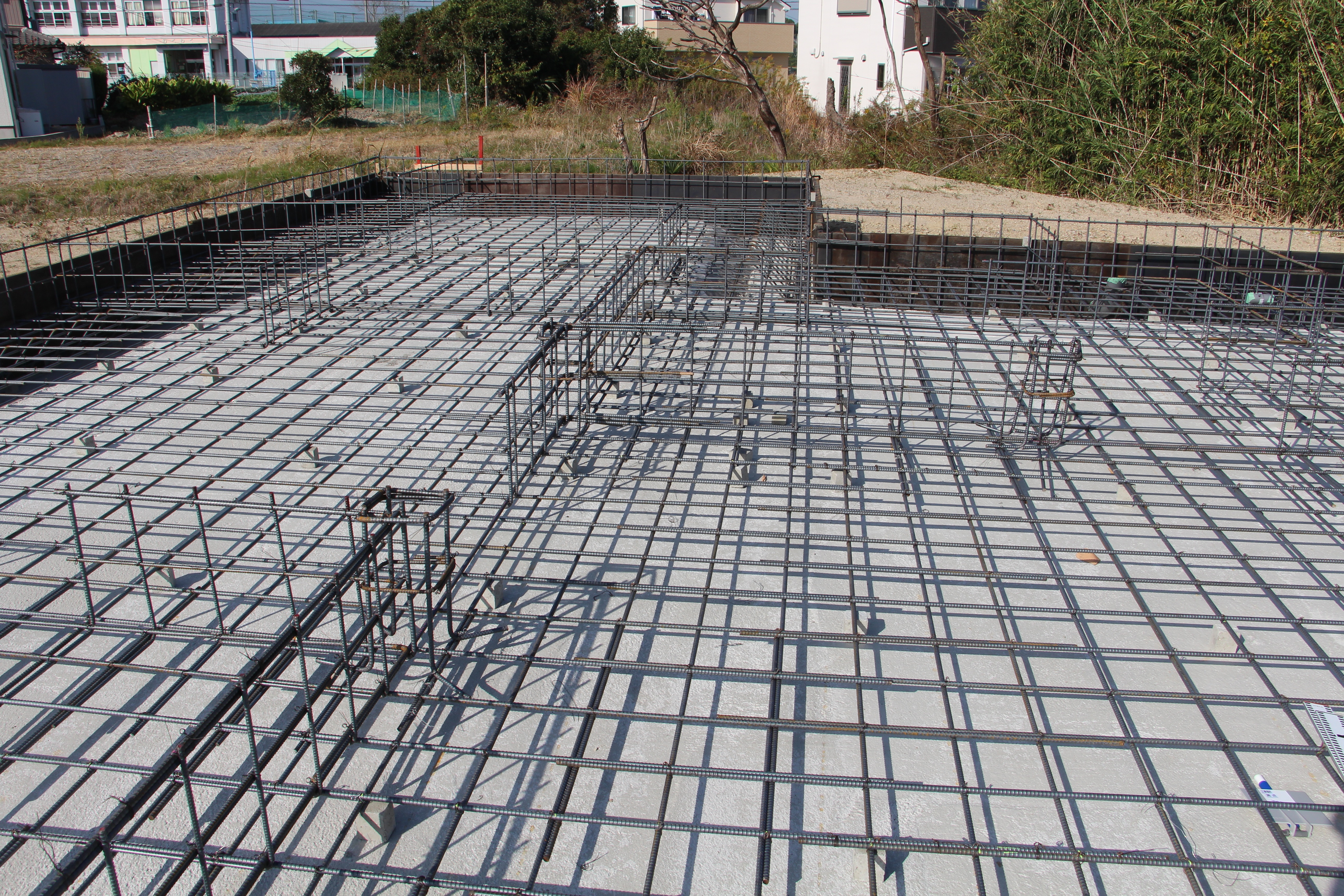 一覧 < new back > 古民家移築 武豊・古民家移築再生住宅基礎工事 武豊・M邸古民家移築再生住宅は古民家解体して上棟に向けた加工も進んでいます。 敷地は広いです。軟弱地盤に埋め土、地盤改良工法に拠る杭を打設しました。 新潟の古民家でも武豊で建てた家とは梁組がいます。高い吹き抜け天井が見所です。 工事進行は引き続き掲載します。 地盤改良の杭の上にベタ基礎の施工です。 縦横ともD13@200です。 ケヤキ210角の柱の基礎部分は大きいです。 Gallery 一覧 < new back > 施工実績ギャラリーカテゴリ一覧 古民家再生・リノベーション 古民家移築 新築 その他 最新の施工ギャラリー 新築 さいたま市H邸新築工事 古民家移築 群馬月夜野S邸新潟の古民家移築再生住宅 新築 愛知県岩倉市 古民家風住宅、愛知県岩倉市K邸新築工事完成 古民家再生・リノベーション 磐田市旧東海道のお茶屋再生工事リノベーション(お茶のかねまつ・ 角打ち茶屋)