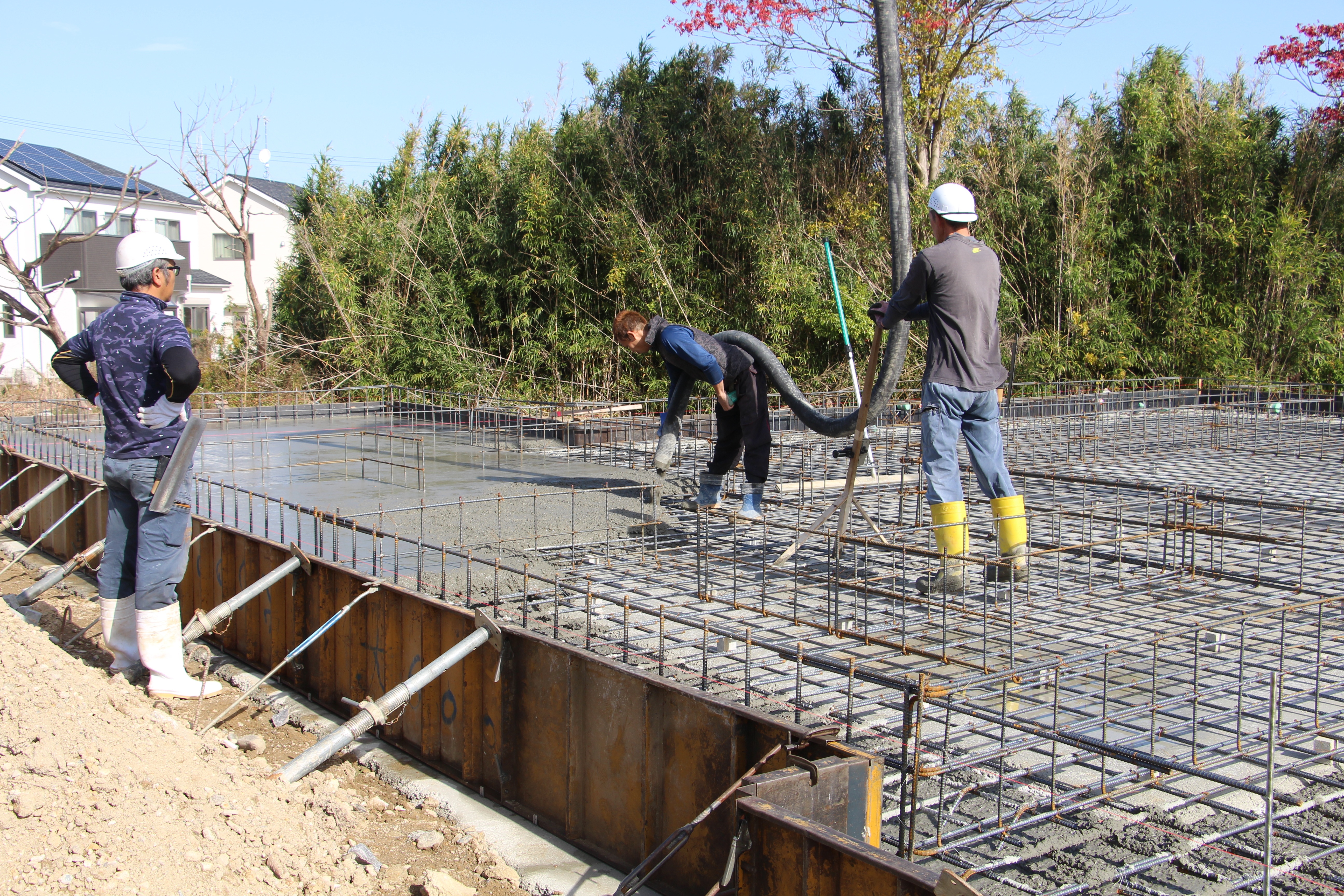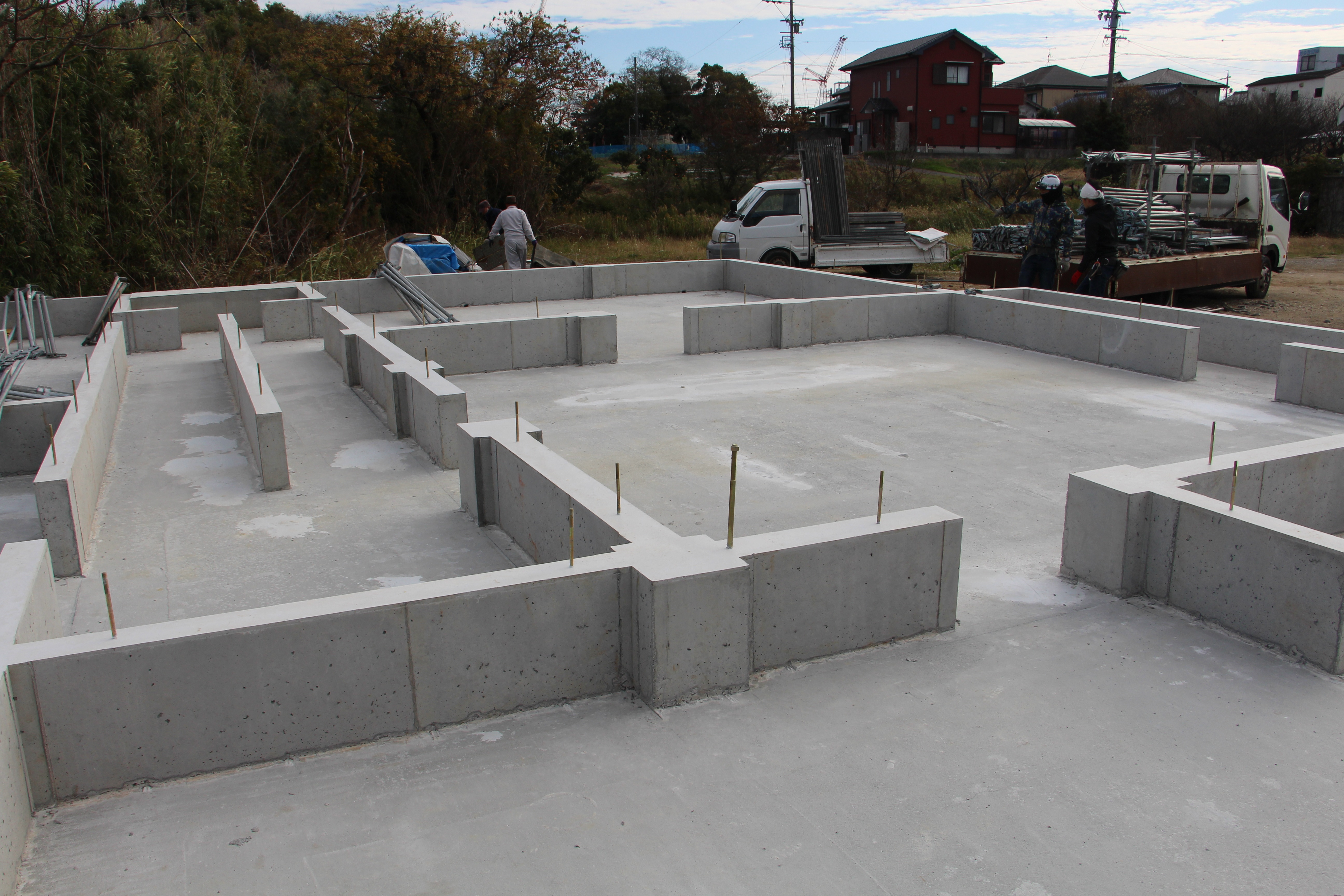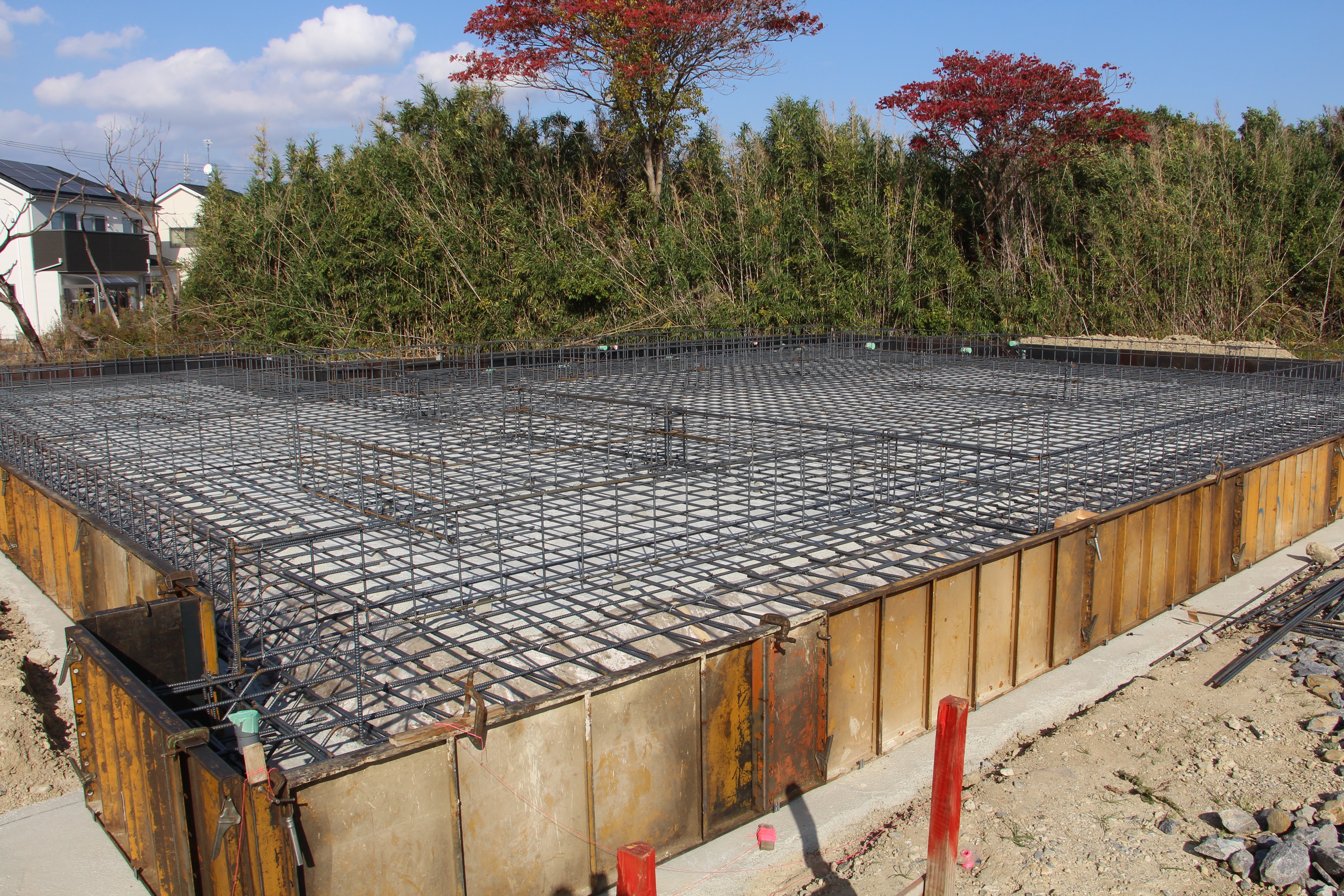 一覧 < new back > 古民家移築 武豊・古民家移築再生住宅基礎工事 武豊・M邸古民家移築再生住宅は古民家解体して上棟に向けた加工も進んでいます。 敷地は広いです。軟弱地盤に埋め土、地盤改良工法に拠る杭を打設しました。 新潟の古民家でも武豊で建てた家とは梁組がいます。高い吹き抜け天井が見所です。 工事進行は引き続き掲載します。 地盤改良の杭の上にベタ基礎の施工です。 縦横ともD13@200です。 ケヤキ210角の柱の基礎部分は大きいです。 Gallery 一覧 < new back > 施工実績ギャラリーカテゴリ一覧 古民家再生・リノベーション 古民家移築 新築 その他 最新の施工ギャラリー 新築 さいたま市H邸新築工事 古民家移築 群馬月夜野S邸新潟の古民家移築再生住宅 新築 愛知県岩倉市 古民家風住宅、愛知県岩倉市K邸新築工事完成 古民家再生・リノベーション 磐田市旧東海道のお茶屋再生工事リノベーション(お茶のかねまつ・ 角打ち茶屋)
