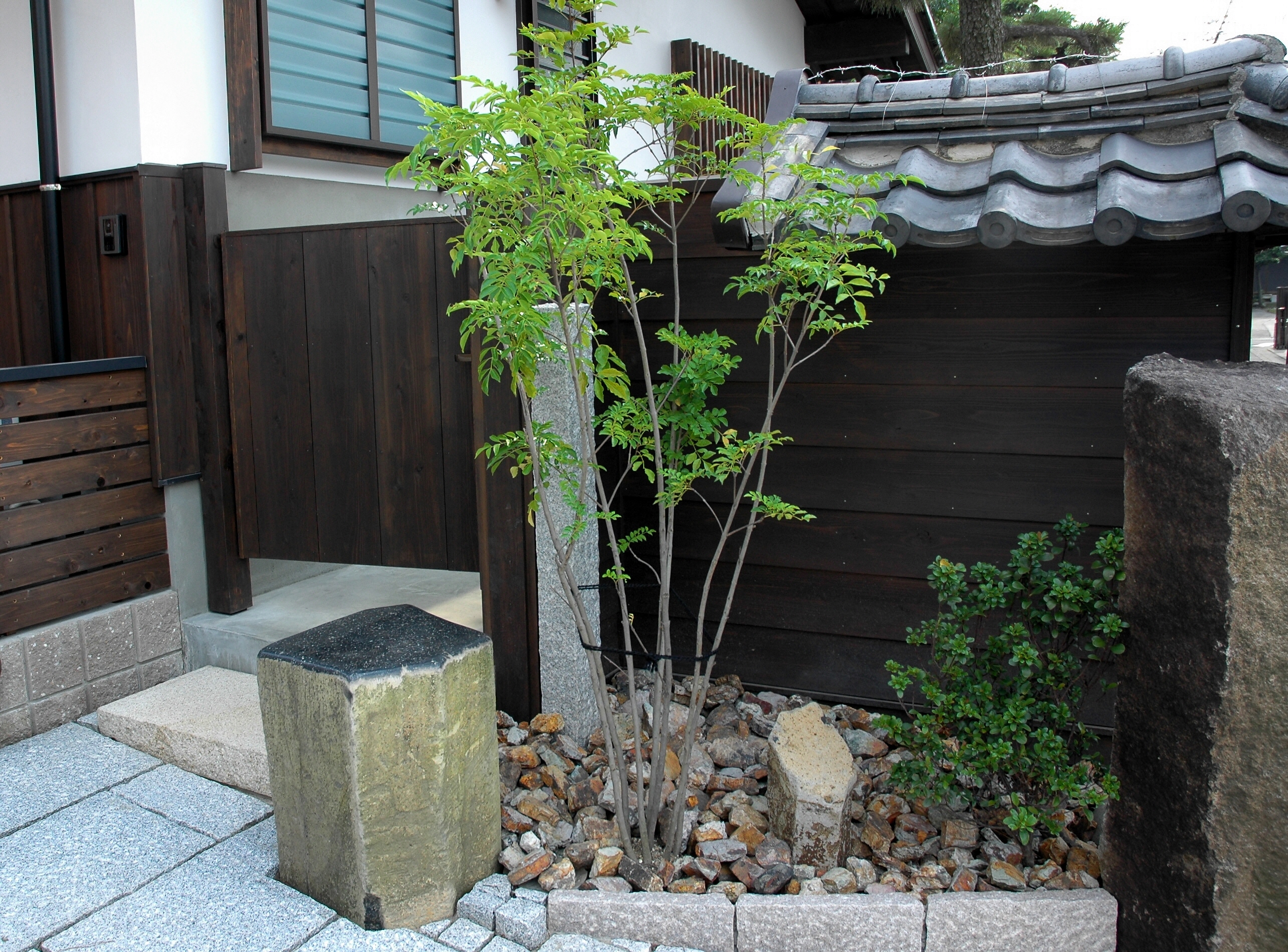 庭は盛り土をして新しい石を組み込みました。設計中に造園計画を庭師と行い早めに植木を植え替えに